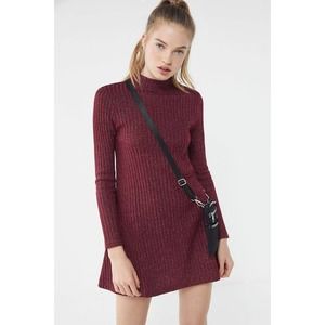 Urban Outfitters Women's Small Maroon Ribbed Metallic Mock Neck Knit Dress