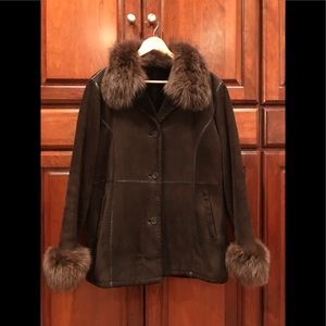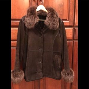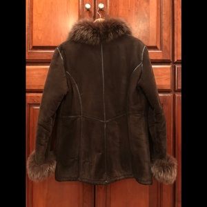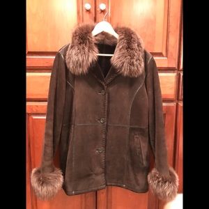 Beautiful brown fox fur suede shearling. Very warm jacket beautiful condition. Size M