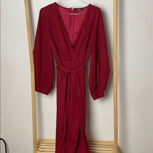 SHEIN Plus Plunging Neck Wrap Belted Pencil Dress