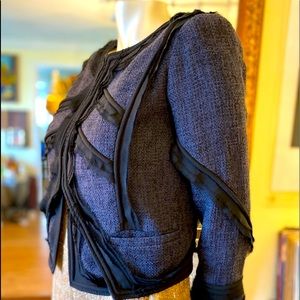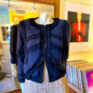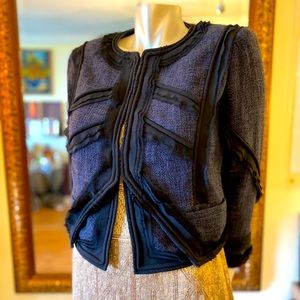 Cool Jacket in great condition by Elizabeth and James, pre-owned , size 2 , fabric is soft and nice made of 70% cotton 30% viscose, it has lining made of 100% poly