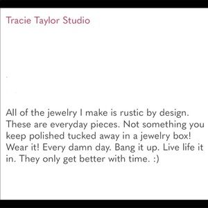 All of the jewelry I make is rustic by design. These are everyday pieces. Not something you keep polished tucked away in a jewelry box! Wear it! Every damn day. Bang it up. Live life it in. They only get better with time. :)