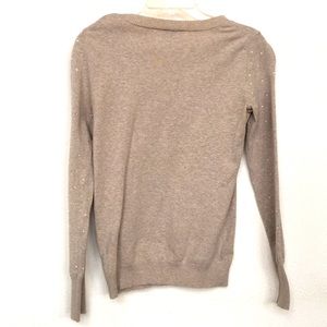 This Express rhinestone sweater has beautiful detailed rhinestones on the sleeves. It is light tan in color and very lightly used.