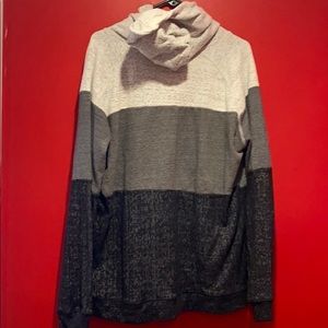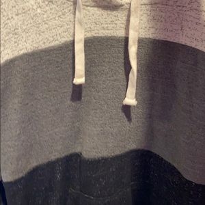 Great condition worn out only a few times no stains Hooded sweatshirt tri color white black grey