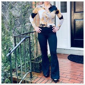 Black chic cotton blend bell flare pants