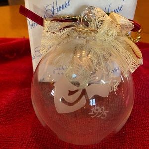 Clear crystal ball with angel and 1995 engraved on it. Beautiful ribbon to embellish.