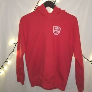 Patrol the powder while out in this vibrant red, super cozy, much fun, SO SOFT pullover hoodie! Drawstrings attached and in really good condition! Minor spot on front left chest.
