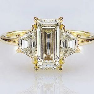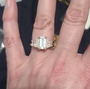 This amazingly gorgeous and shiny ring features AAAAA lab created diamond 5*10mm High quality cubic zirconia in a 18k real gold plated over sterling silver band. Prong setting.