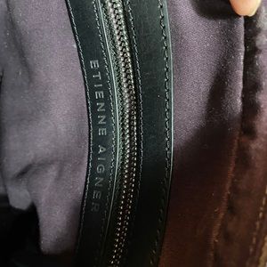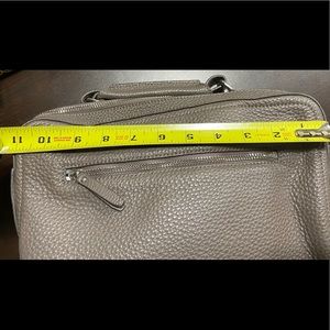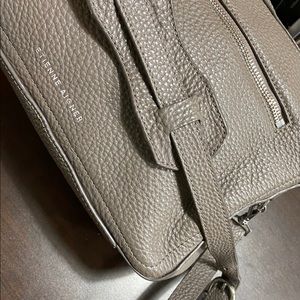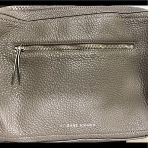 ETIENNE AIGNER Medium Crossbody Grayish Leather Boxy Shoulder Bag. This bag is perfect for a professional woman or student. It has many compartments to store cell phone, tablet, small books, pens, and all other necessities. Strap comes with should pad.