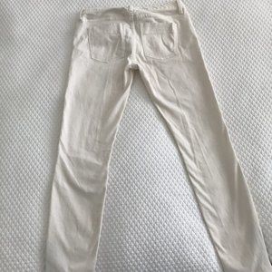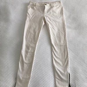 SUPER SOFT! Off-white, skinny pants. Zipper at ankle adds cute detail! Five pocket, zip fly with button. Lightly used, tiny discoloration by back pocket. Lint roller makes them look brand new!