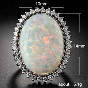 💍NEW HUGE OPAL DIAMOND HALO STERLING SILVER RING