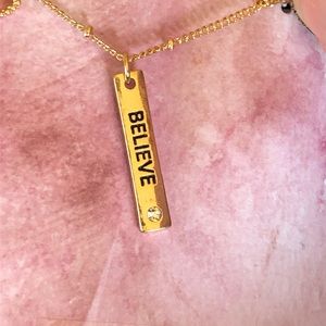 NWT JESSICA SIMPSON CHARM NECKLACE/ pretty gold chain with three charms / believe/ eye& pretty green pendant! Believe & eye with crystal embellishments - beautiful...perfect valentine gift...
