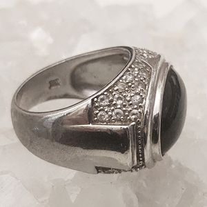 ISO Info- Onyx & Diamond Sterling Silver Ring-9.25