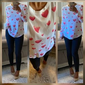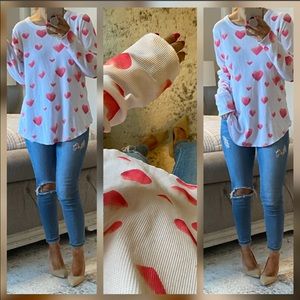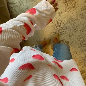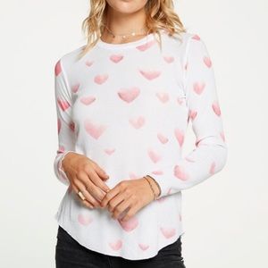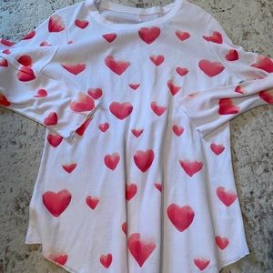 Adorable heart thermal. On the lighter side, so itโs perfect for Warner weather days. Modeling med in second pic and marge in third pic.