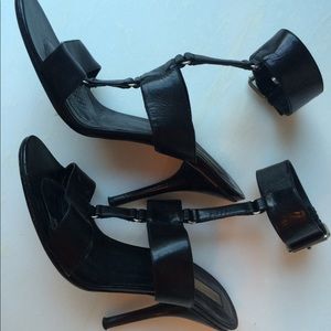 Michael Kors Collection (his luxury label) black leather stilettos. Gladiator style. They are gorgeous. Retailed for $750+. Used but in great condition. Italian size 38. The bottom I had rubberized with tan colored rubber.