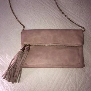 LIGHT PINK FOLDED LEATHER CROSS BODY BAG