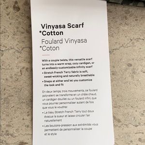 Lululemon Vinyasa Scarf in evergreen camo multi. Super versatile wrap scarf. Can be worn many different ways. Material is really soft, but durable.