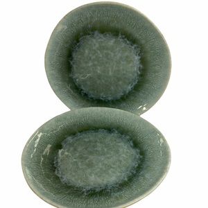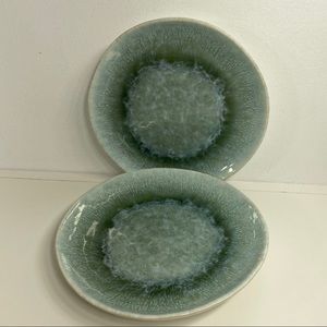 West Elm Reactive Glaze Stoneware Salad Plates Green Dusty Mint Set of (2)