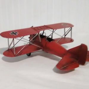 This Is A Metal Red Barron War Plane. Measurements: L: 10". W: 12". H: 4.4". Smoke Free Home. Offers Welcome 🙂