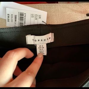 Topshop US black notched mini skirt. Brand NEW with tags. Elastic waist, front slit detail. I have 2 sizes - US sizes 2 & 4