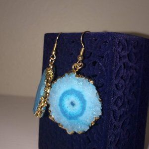 LAST PAIR! Gold & Ocean Geode Slice Earrings