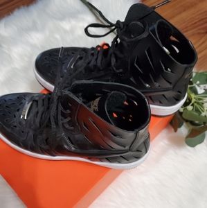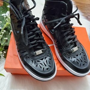 Rare women's AF1 mid high tops in black with white sole. I have only worn these once and with care! Practically brand new. I bought this last pair at the store without the original box, so I do not have that. It will come with a box, just not for the same style. These are super unique in that the shoe has a built in cut out design!