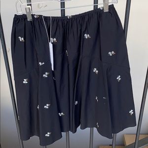 Dress up or dress casual. Perfect skirt for any occasion. Black soft cotton fabric, elastic waste, side pockets, cute flowers embroidered, brand new