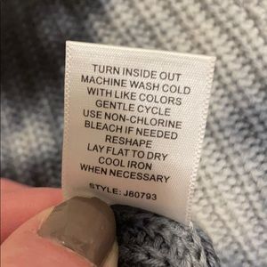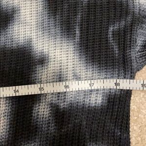 Rayon and cotton tie dye navy and white/light grayish V neck sweater size M. Fun with jeans and feels a little silky. NEVER WORN NWOT. About 20-21” from shoulder seam to bottom of sweater; about 18.5” across armpit to armpit, so not form fitting but definitely not a baggy/big sweater either. Overall a fun, nice sweater that I forgot I had and just thinning out closet now.