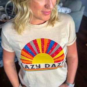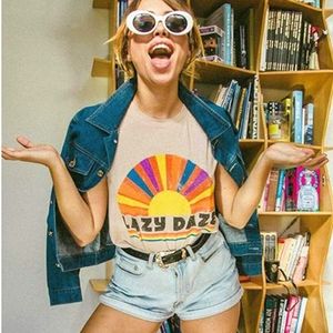 New Lazy Daze Rainbow Graphic T-Shirt Top