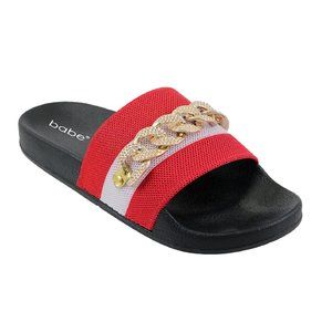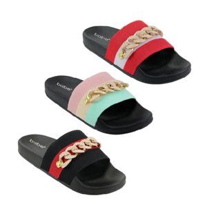 Women's Stripe faux Gold Chain Slides