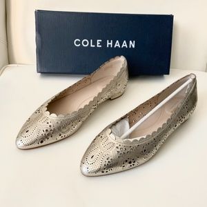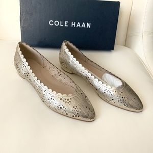 Cole Haan Grand Ambition Callie Gold Leather Flat