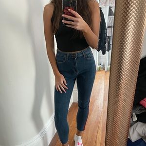 Forever 21 High Waist Side Striped Skinny Jeans with Frayed Hem