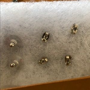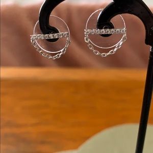 Set of 3 silver earrings - straight bar studded with faux diamonds and a dangly chain, solid silver bar and star studs with a faux diamond in the center. Cute earrings. Brand new without tags, never worn. Smoke free home.