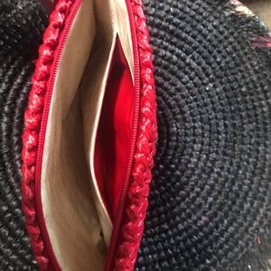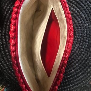 NEW AUTHENTIC Rodo Italy Solid Red Signature Basket-Weave Crossbody Bag With Gold Accents