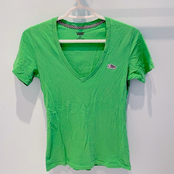 Beautiful vivid green short sleeve shirt with vans shoe logo patch on front of shirt. Very comfortable and light, soft material. Worn 2-3 times.
