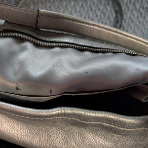 This Coach Park Convertible Hobo is in good used condition with minor flaws as shown in photos. Crossbody strap is adjustable and removeable. Coach hangtags attached. Two outside pockets; inside there is one zippered pocket and two multifunction pockets. Lining does have some marks. Overall, a good-sized bag for carrying everyday essentials. Measurements are approximate.