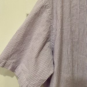 Men’s Ralph Lauren short-sleeved striped shirt — lilac or lavender and white seersucker