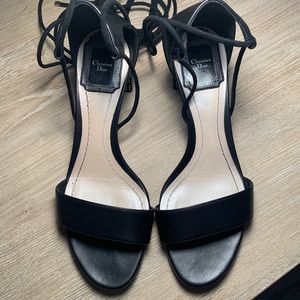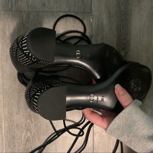This black leather lace up style heel is to die for! I love the rhinestone detailing, they shine beautifully!!Only worn once😍100% AUTHENTIC No wear on the heels and very light wear on the soles! The quality of these shoes are insane! Size 36.5 EU but could fit US sizes 6 through 7