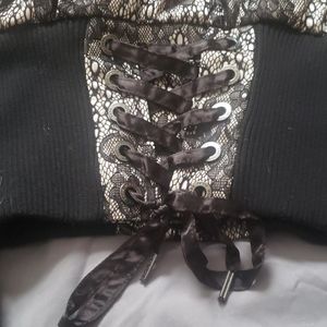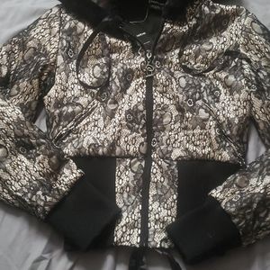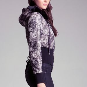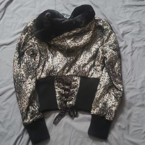 Rare Limited Edition Bebe Lace Up Corset Bonded Lace Puffer Jacket