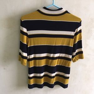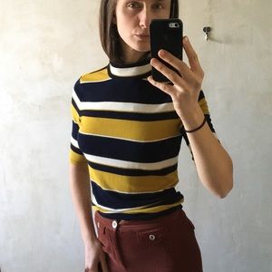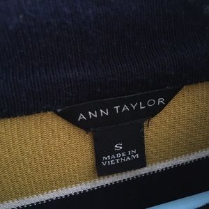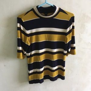 Mustard, navy and white striped shirt by Ann Taylor. Major 70s vibe if you pair with flares and campus boots 🤠 Looks great with a suede jacket or vest. Good used condition. No holes rips or stains. Classic, nautical, chic.