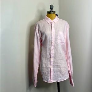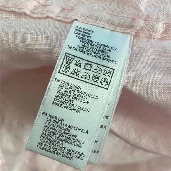 Pitt to pit: 22 inches. Shoulder to hem 31 inches. 100% linen. Fabulous comfortable new with tags. Designer is forever21 American brand. Size large. Color soft rose pink.