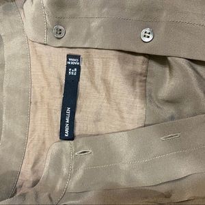 Karen Millen Mixed Media Button up Olive Dress Sz6 fits XS S