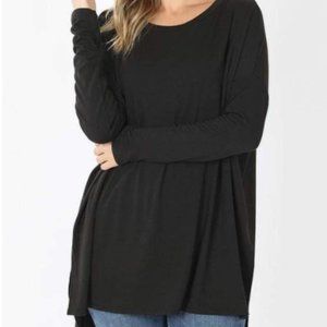 Kick back and relax in this super soft long sleeve top! Featuring dolman sleeves and a side slit high low hem, it is the perfect length to wear with leggings or dress it up with some jeans and booties!