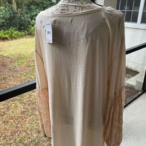 Oversized, Floral Pattern Sleeves with Button Cuffs, Wide Scoop Neck, Chest Pocket, Raw Edges, Side Vents. Balloon contrast sleeves.