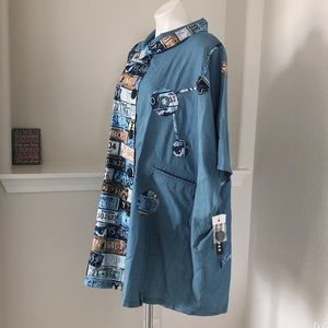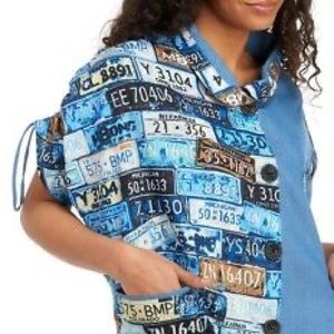 Neo Noble Blue License Plate Color-block Cocoon Shirt Size L New w/Tag
