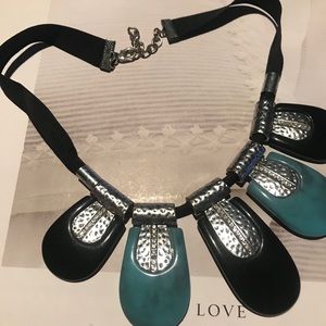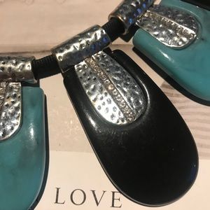 Turquoise/black necklace with rhinestone accents