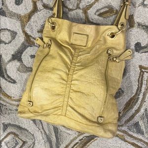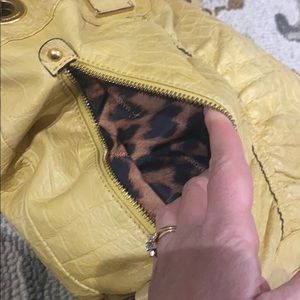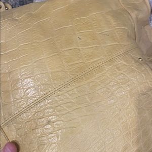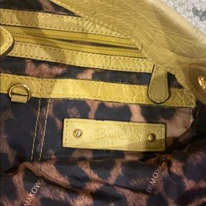 B. Makowsky beautiful white yellow leather extra large or large size tote style bag has two zippered pockets on the outside inside there is two pockets as well as a zippered pocket closest with the magnetic closure. Beautiful gold hardware There’s only a couple spots on it as seen in the photos non-smoking home fast delivery at an excellent price get it today
