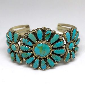 Authentic Zuni turquoise and sterling silver adjustable bracelet with beautiful detail!