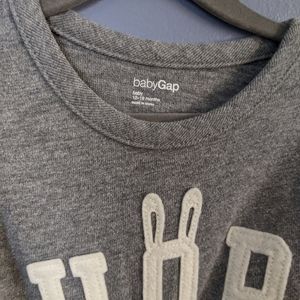 The perfect spring time top for your little one. Gray with off white letters. Has a little thickness to the fabric so not quite tee shirt material. No pulls, stains or holes. EUC, stored in armoire since purchased. Not even sure my daughter wore this lol Pet friendly, smoke free home.