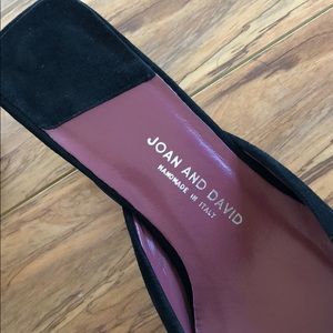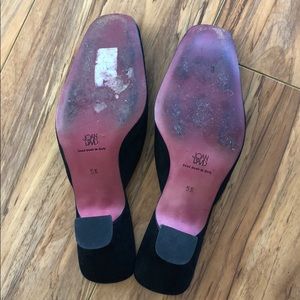 Mint condition, maybe worn once. Hand Made in Italy. Suede black slides with architectural 1” heel. Super classic lines