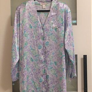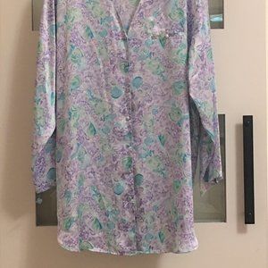 Floral printed, button-up silky nightshirt with a top pocket! Does not have its tags, but never worn.